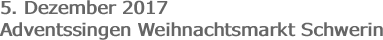 Ein Höhepunkt des diesjährigen Adventssingens - unser Chor auf dem Schweriner Weihnachtsmarkt. Solistendarbietungen, weihnachtlicher Chorgesang und ein gemeinsames Singen mit den Weihnachtsmarktbesuchern - es war wieder ein besonderes Erlebnis!